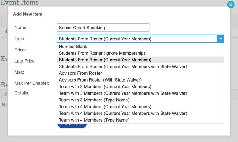 If a new or additional advisor needs to be added to the District/Area account for creating and/or managing events that does not currently have access to the Dues/Roster Management screens, please contact Gwenn Cain (gwenn@texasffa.org) and permission will be given to whoever is allowed by the district and/or area. |
