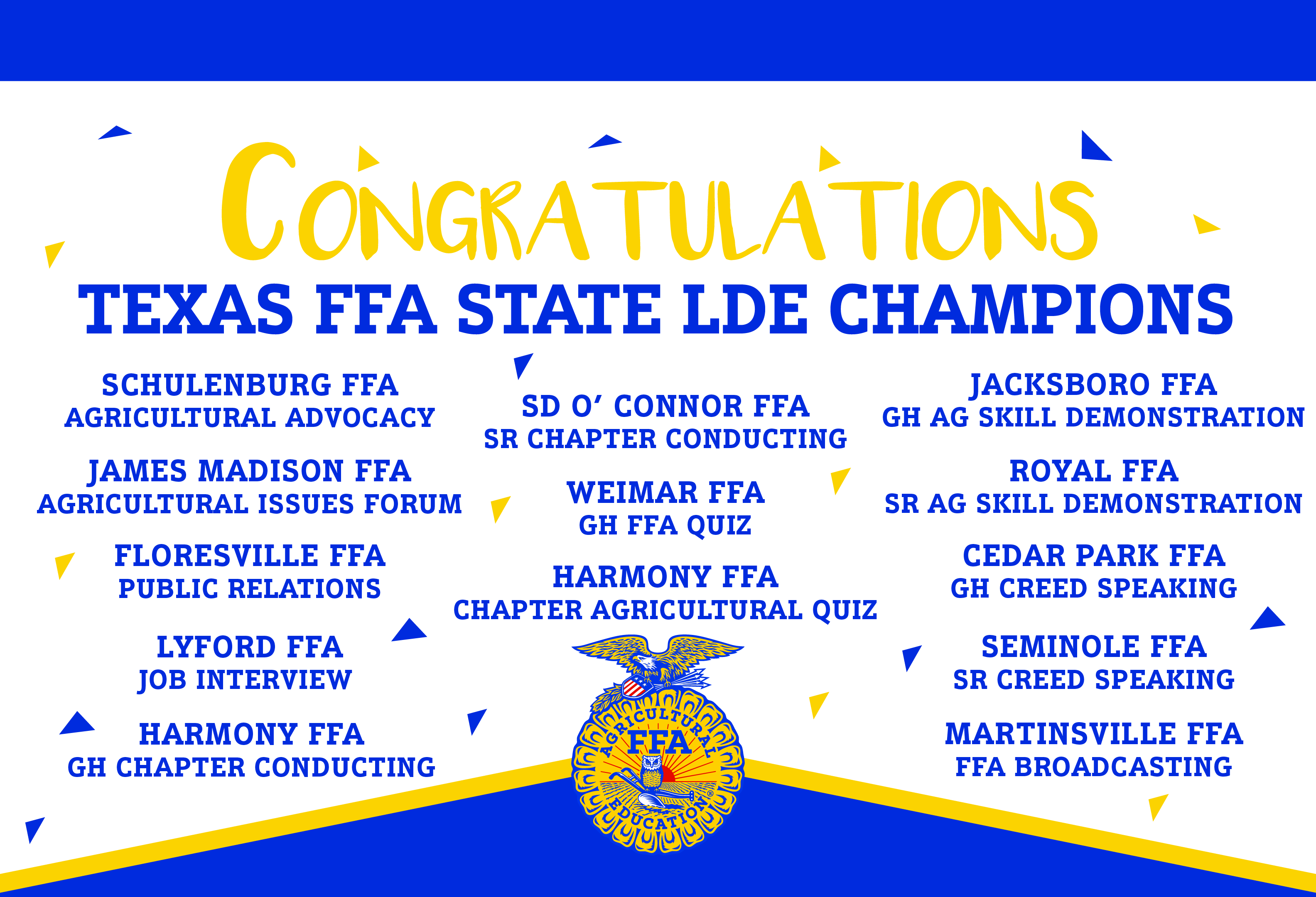 Updates to the Texas FFA State LDE Contest per the 2nd Quarter Board Meeting in January 2025.